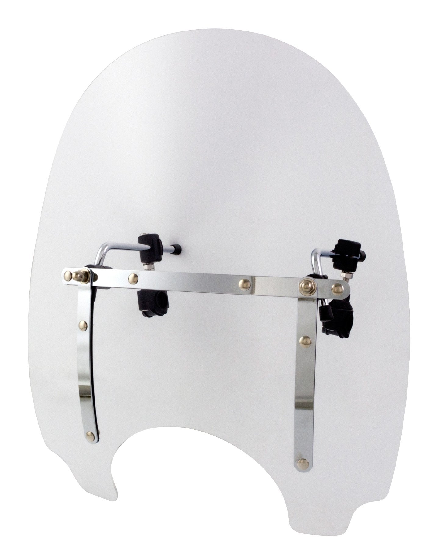 Premium acrylic custom windshield|Features integral high-chrome chassis|Fully adjustable fitting kit|Fits 22mm and 25mm bars|560mm (H) x 480mm (W)|